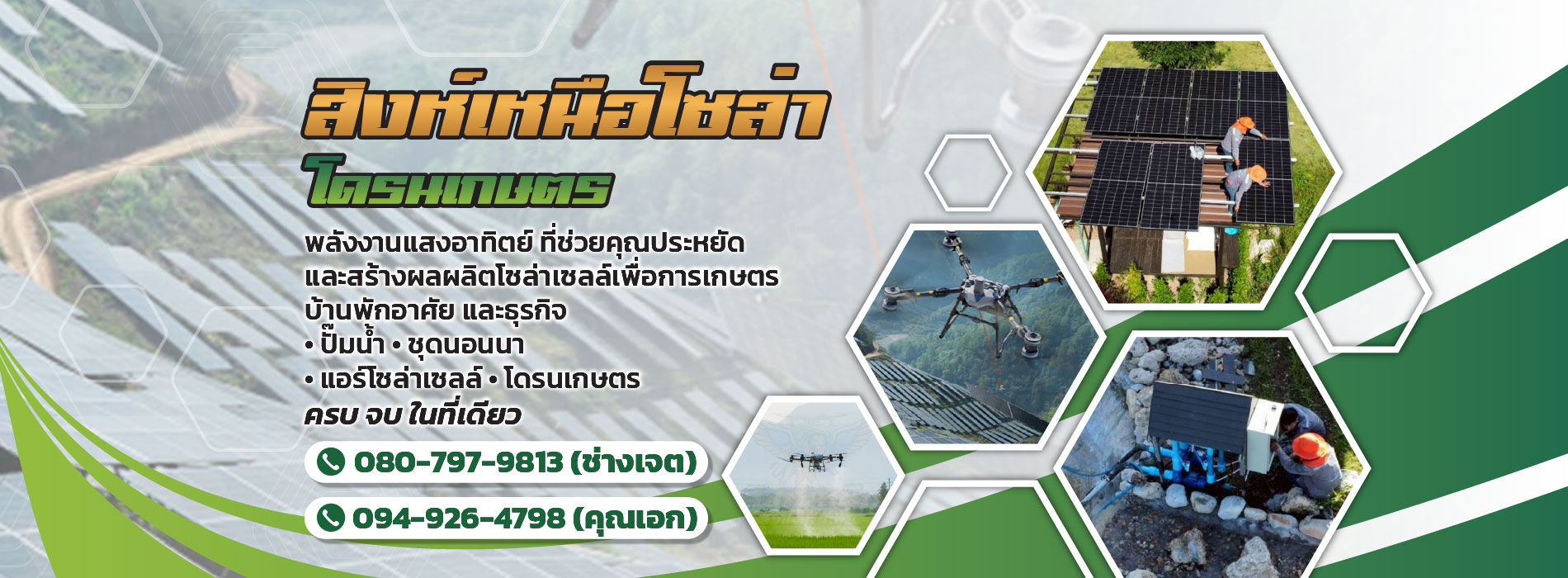 ปั๊มน้ำ • ชุดนอนนา • แอร์โซล่าเซลล์ • โดรนเกษตร